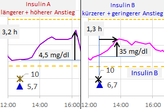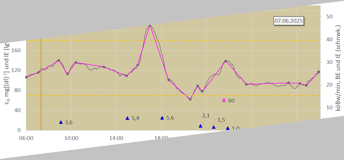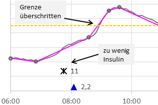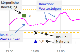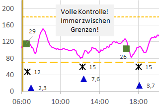 Damit werden für den Diabetiker und seinen Arzt alle Details zur Entwicklung der Glukosekonzentration sichtbar. So lassen sich besonders Dauer und Intensität von Unter- und Überzuckerungen (Hypo- und Hyperglykämien) erkennen.