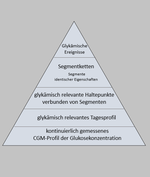 Die Erfindung stellt die einzelnen glykämischen Ereignisse (Mahlzeiten, körperliche Bewegung, Medikamentengaben, ...) in den Mittelpunkt, lässt so die Bewertung von Details zu und überwindet dadurch die bisher üblichen Pauschalisierungen.